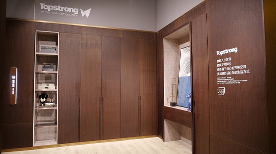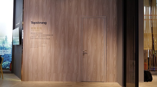 跟随国际化、极简化的大众需求趋势,顶固轻奢系列产品结合极简设计理念,推出“门墙柜一体化”产品。隐形房门可做到3m高,与墙、柜融为一体,实现视觉极简化、空间感最大化,品质形象完美升级,现场来宾一眼就赞不绝口。
