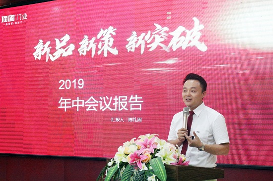 而后,顶固门业副总经理陈礼周先生带领一众经销商把脉行业发展趋势,以差异化产品新战略拨开迷雾、剑指2019下半场黄金赛段!
