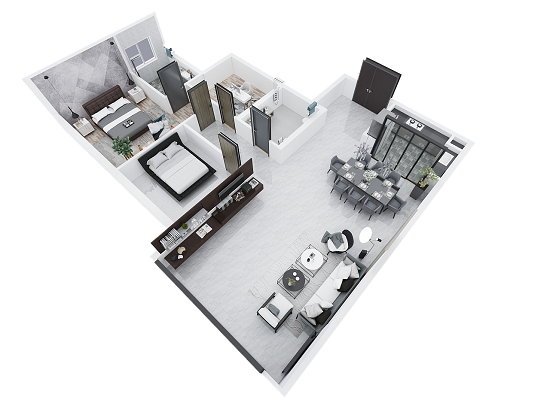 门墙一体的崭新设计,打破以往墙面与房门各自为国的思维逻辑,以点、线、面塑造强关联、高融合度的立体空间。