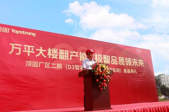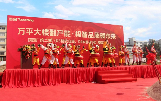 林总在典礼上表示:“厂区二期(即总第五期工程)建成后,顶固前瞻性的装备技术和智能制造的工艺升级将带来人工成本的大幅下降,整体生产效益将得到巨大的提升。未来,顶固将继续主打“个性定制”和“智能创新”这两张王牌,建设数字化智慧型工厂,力争成为领跑全球家居行业的标杆型企业!”