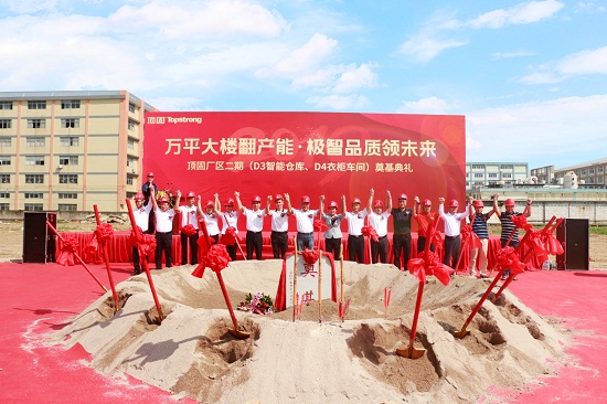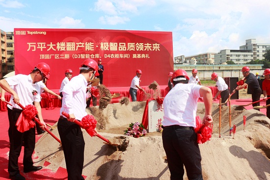 紧接着,在喜庆的鞭炮声、锣鼓声中,林新达与顶固高层领导、嘉宾一起为顶固厂区二期(即总第五期工程)的奠基石进行培土,意味着顶固智能工厂正式破土动工,为企业的发展历史划上了重要的一笔。