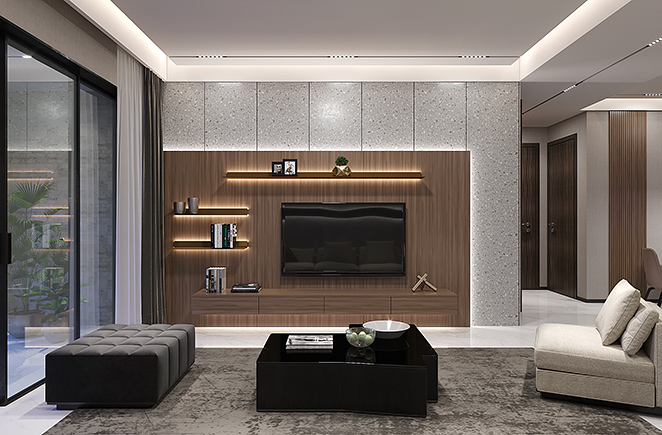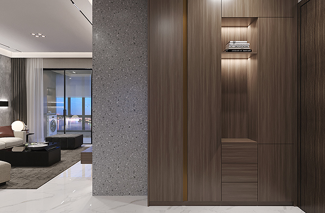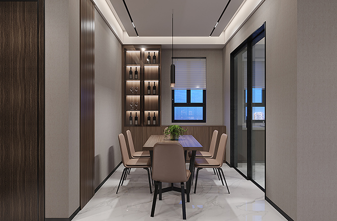 精致生活源于对细节的执着追求。挂壁电视柜,空间充足的酒柜,充分满足了高品位的展现。酒柜空闲部分还可作为餐台的辅助收纳,更富有质感,不仅节省空间,还十分便利。