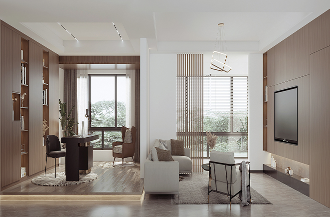 待客之厅,不再像从前那样繁重,而是将生活停留在一个有质感与高度的地方。
