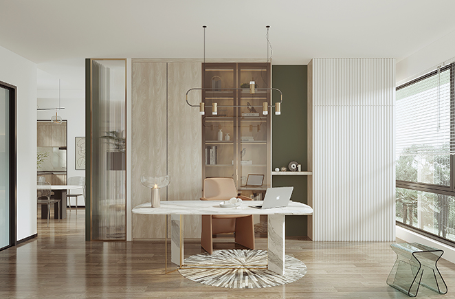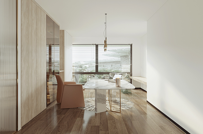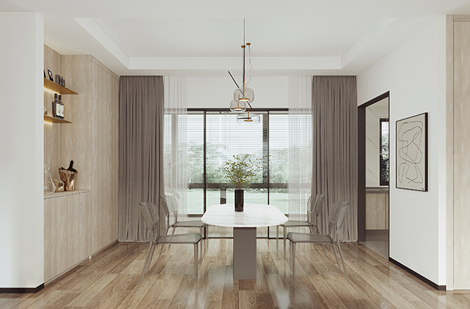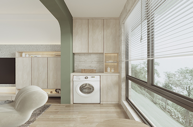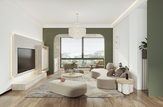 客厅区域的舒适感,如流水般自然,干净清新的色调混合出恰到好处的温馨。