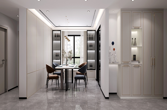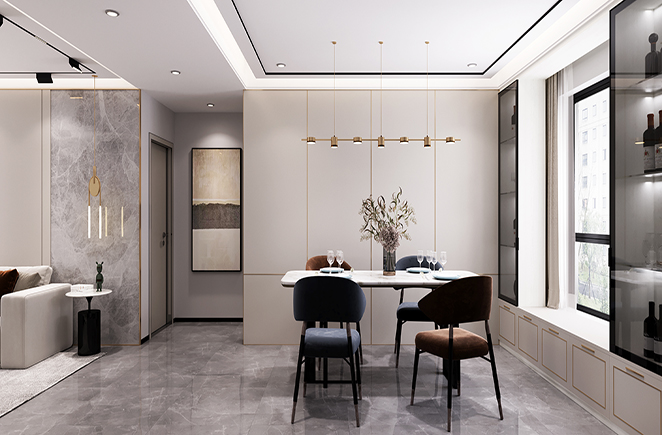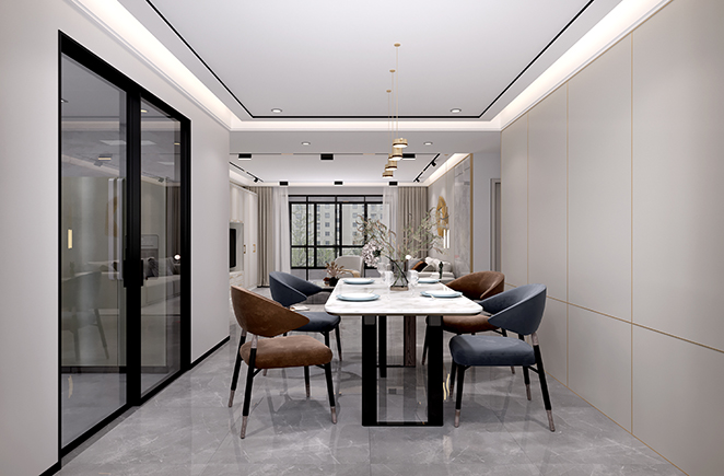客厅的色系交错一直延续到餐厅区域,不流于表面的沉稳奢华,浸透在每处转角与设计里。