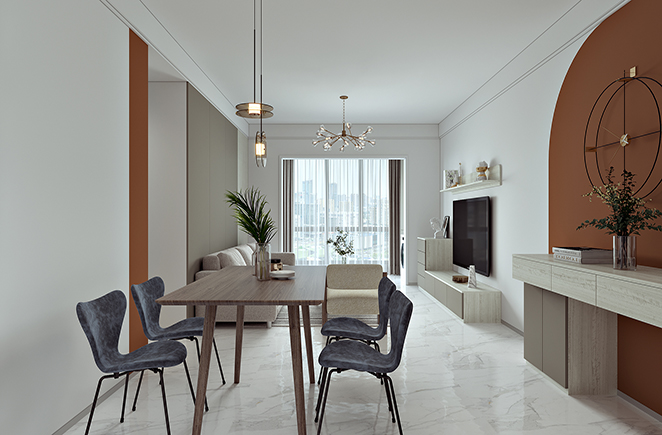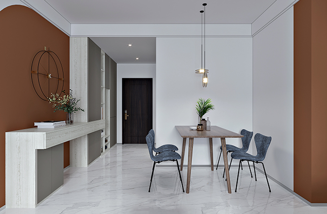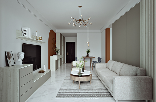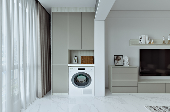 条纹与平滑的互动让墙面如诗画般升华,浅色调的空间为居住者卸下一切的繁重,大面积的留白给予空间自由,留给生活更多的想象。