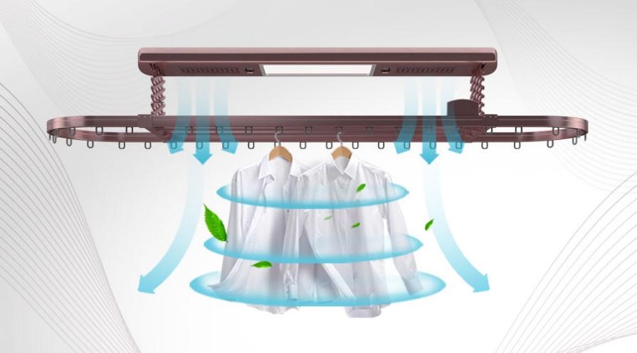 快速干衣:新颖风道设计、多口径出风,全面优化风导向,可实现快速干衣;两端静音贯流风机,双模智能风干烘干的模式,根据南北方地区不同的烘干需求,可设定标准模式或加强模式,让你轻松应对365天生活;持续吹出40-50℃恒温暖风,晾衣同时有效烘干,拒绝靠天晾衣,让衣物更加清爽、干净。